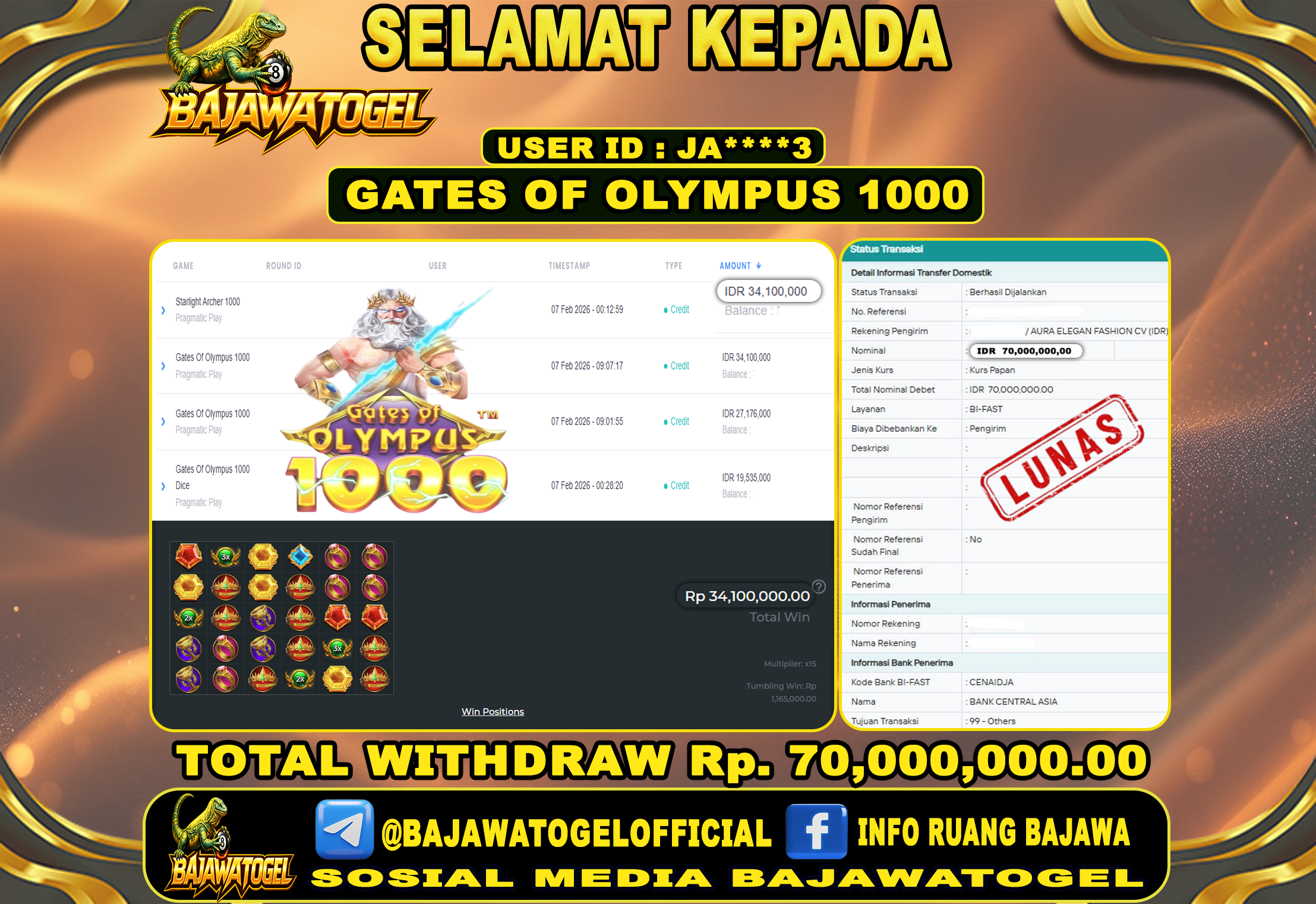 Tidak hanya janji manis, di BAJAWATOGEL kamu bisa melihat langsung bukti jackpot member yang benar-benar cair. Member yang disiplin, paham ritme permainan, dan rapi mengatur modal sudah membuktikan hasil nyata melalui kemenangan yang konsisten.